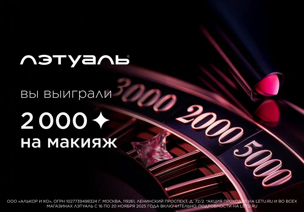 Когда твоя ставка — красота, ЛЭТУАЛЬ делает ход! На счету уже 2000 бонусов на продукты для макияжа. Проверяй баланс, списывай бонусы и экспериментируй с образами.