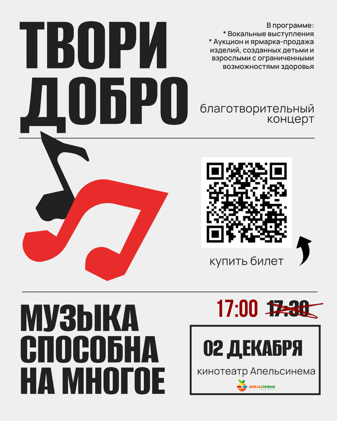 Твори добро | Благотворительный концерт 2 декабря в 17:00